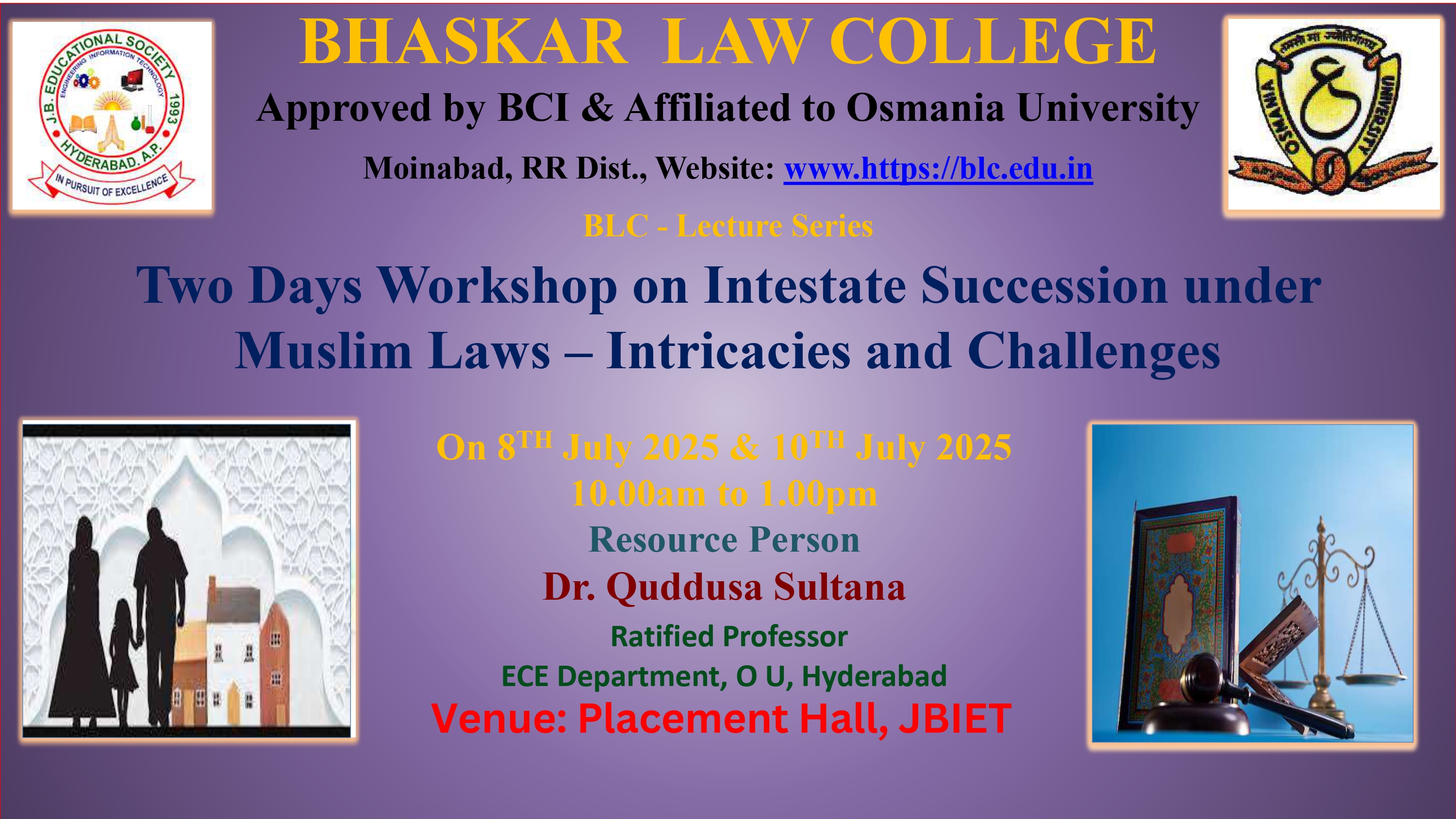 Two Days Workshop on "Intestate Succession under Muslim Laws - Intricacies and Challenges" on 8th July 2025 & 10th July 2025.