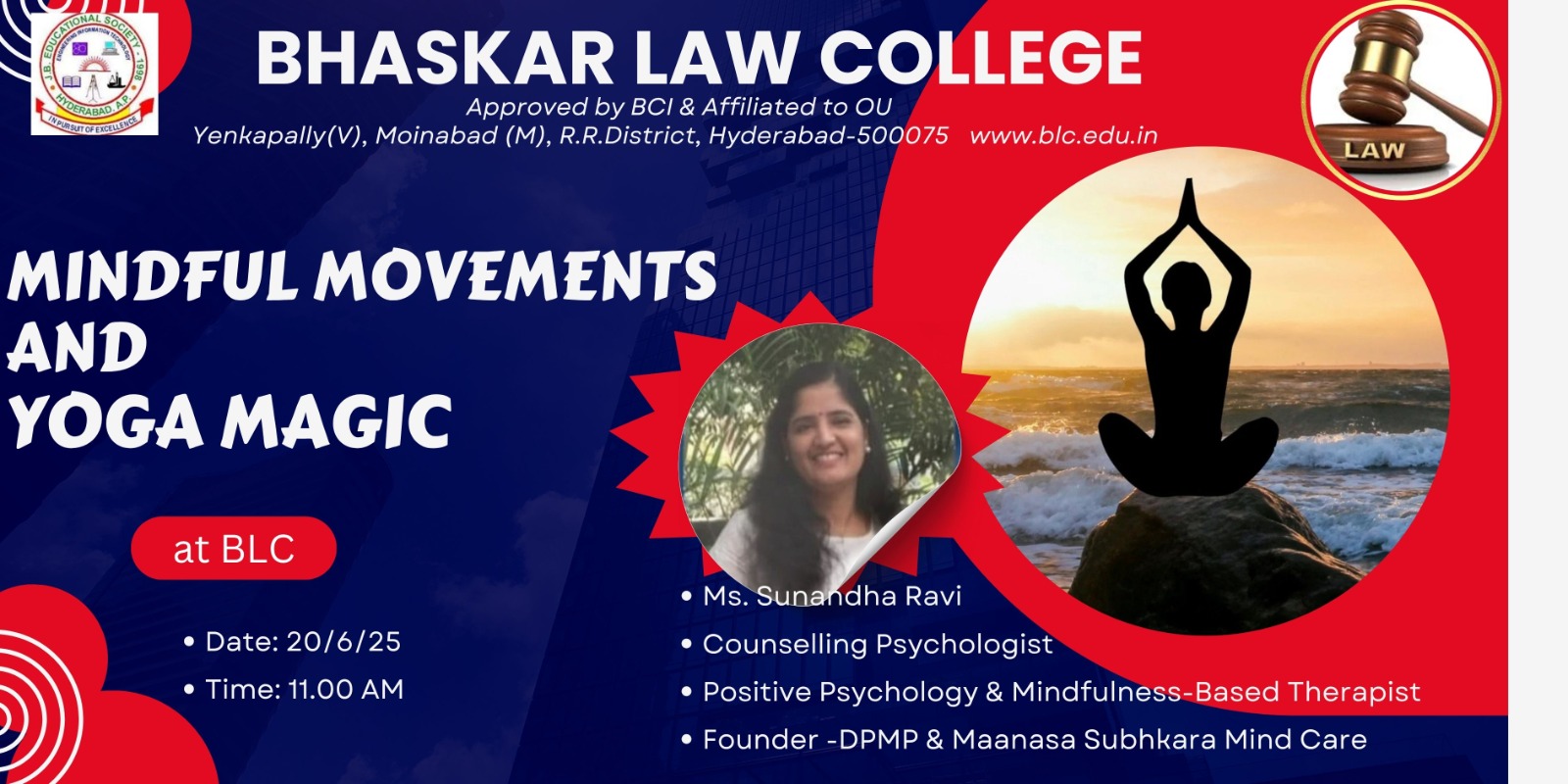 Guest Lecture on "Mindful Movements and yoga Magic" by Ms. Sunandha Ravi on 20th June 2025.