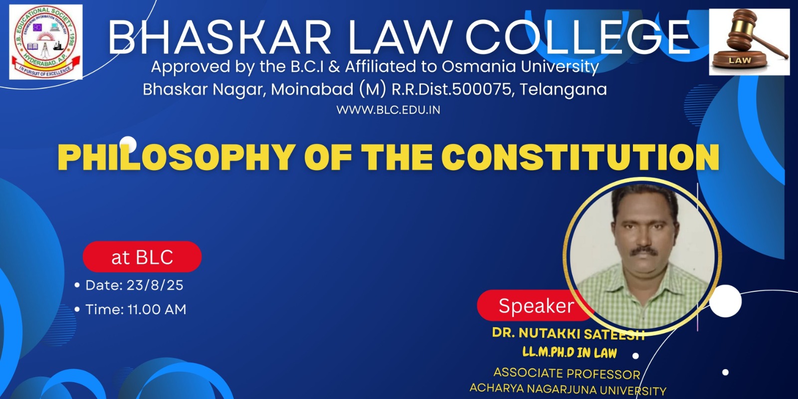 Guest Lecture on “Philosophy of the Constitution” by Dr. Nutakki Sateesh, Associate Professor, Acharya Nagarjuna University, scheduled on 23rd August 2025.